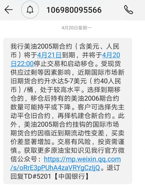 4月22日,很多投资者在收到中行催款补充保证金短信后,看到自己账户的亏损的资金,“无法相信自己的眼睛”。
