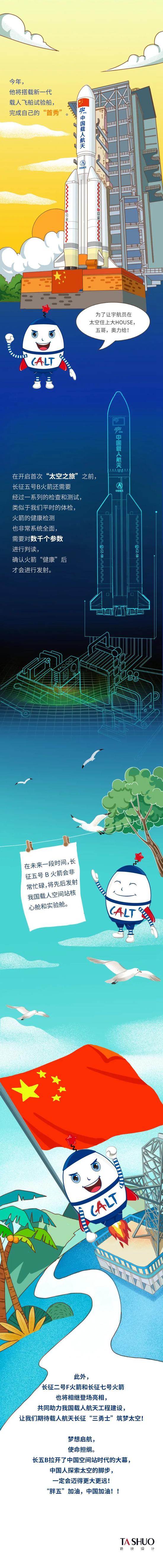 长征五号B运载火箭由中国航天科技集团有限公司所属中国运载火箭技术研究院抓总研制,是中国首个采用一级半构型的新一代大型液体运载火箭,专门为中国载人空间站工程研制。