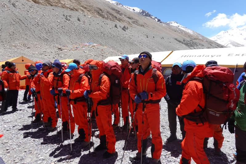 2020年5月6日13时30分,2020珠峰高程测量测绘登山队出征仪式在珠峰大本营举行。