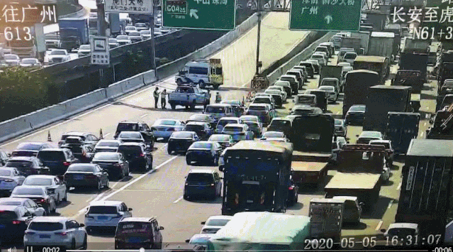 广深北行61转虎门大桥匝道全封闭,导致该路段行车缓慢1公里。