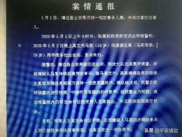 5月6日,据陕西政法委官方微博消息,平安靖边发布警情通报称:5月5日,靖边县公安局侦破一起故意杀人案,并成功营救被害人。