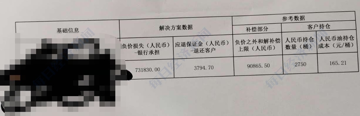 除了承担负价亏损以外,中行还将给予投资人补偿,根据这位投资人的解决方案数据,中行给予其负价之外的和解补偿上限为90865元,约为该投资人总持仓成本的20%左右。