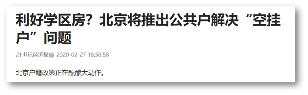 但21世纪经济报道坚持认为“北京户籍政策正在酝酿大动作”,对于北京出台“公共户”持有乐观态度。