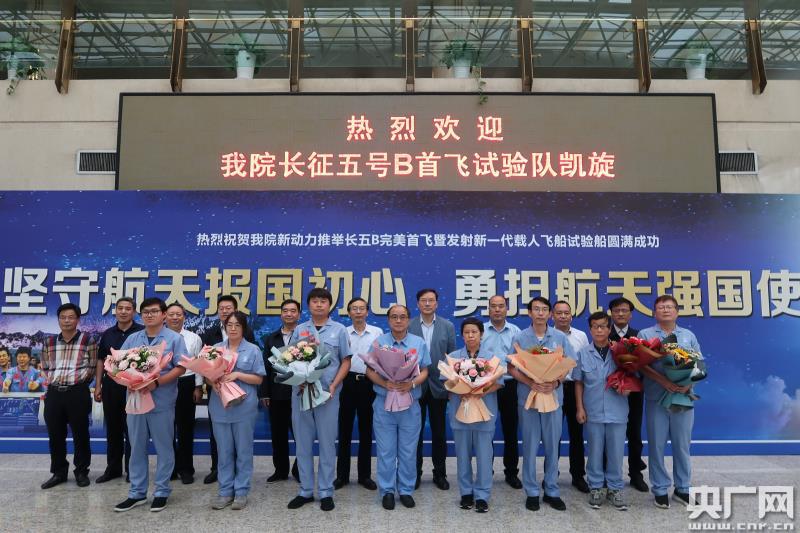 央广网西安5月7日消息(记者刘涛 通讯员何怡)5月7日16:30,航天科技集团六院举办简朴而热烈的欢迎仪式,迎接在海南文昌执行长征五号B首次飞行任务的西安地区试验队员凯旋。大家共同庆祝长五B火箭首飞成功,共同分享液体动力助力中国载人航天空间站建设拉开帷幕的喜悦和自豪。航天六院党委书记周利民、纪委书记王晓君、副院长李斌出席凯旋仪式,并与试验队员合影留念。