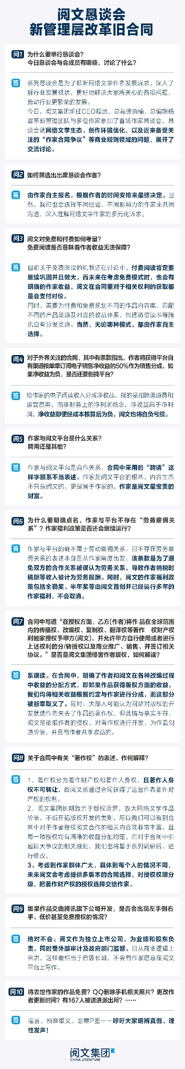 在这次恳谈会上,阅文新管理团队给出来的选择题还有很多,也有很多其他丰富议题的讨论,这里小编拿到了一章长长的长图,可以自取!