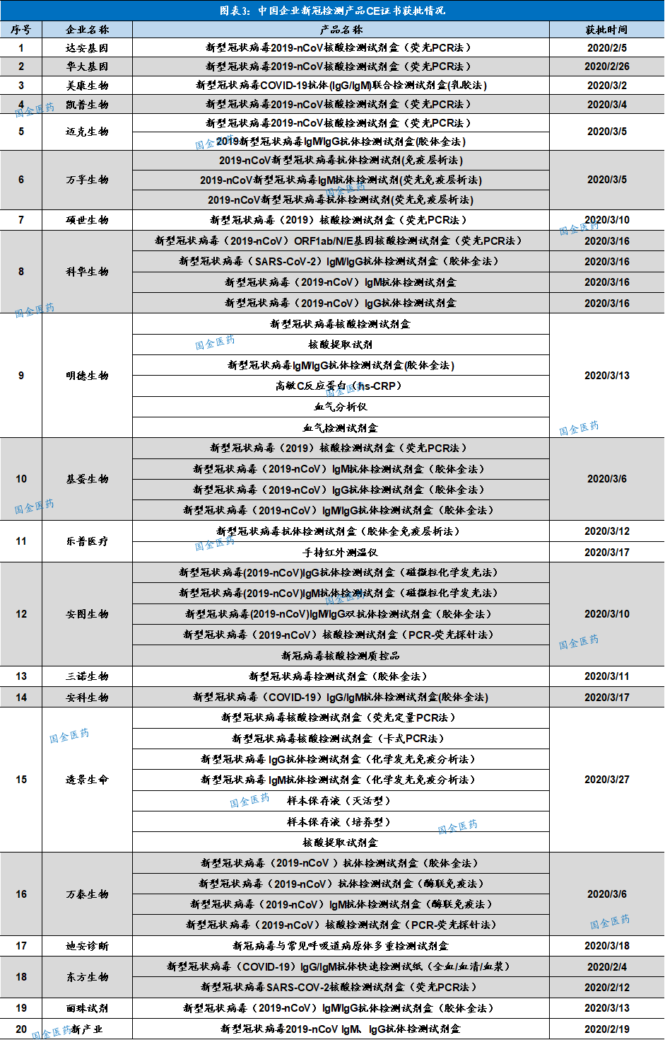 图表13:部分上市企业新冠检测产品CE认证获得情况
