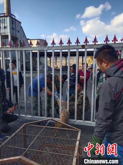 红石林业局野生动物保护部门接到报告后迅速赶到现场,经过比对确认这是一只雄性河麂。现场人员拆解铁门后,将河麂装入铁笼送到吉林市救治。