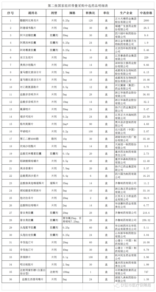 第二批国家组织药品集中采购的32种药品中,覆盖高血压、糖尿病等重大慢性病用药,以及价格比较昂贵的抗肿瘤和罕见病用药,包括:9种抗菌药、8种高血压、高血脂等心血管疾病用药、3种抗肿瘤药、2种降糖药、2种消化系统用药、2种解热镇痛药,以及抗病毒药物、泌尿系统用药、呼吸系统用药、抗老年痴呆药、抗组胺药、男科用药各1种。
