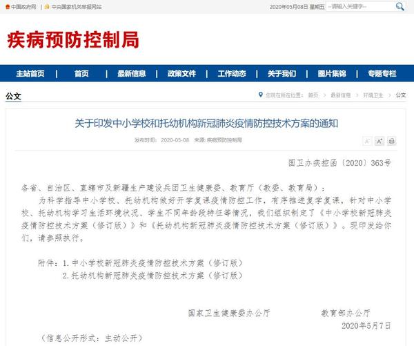 据5月8日国家卫健委网站最新消息,国家卫生健康委、教育部联合发布《关于印发中小学校和托幼机构新冠肺炎疫情防控技术方案的通知》,针对中小学校、托幼机构学习生活环境状况、学生不同年龄段特征等情况,两部门组织制定了《中小学校新冠肺炎疫情防控技术方案(修订版)》和《托幼机构新冠肺炎疫情防控技术方案(修订版)》。