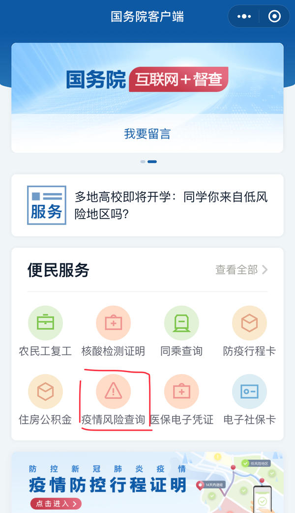 小贴士:通过国务院客户端小程序,可查询所在地风险等级