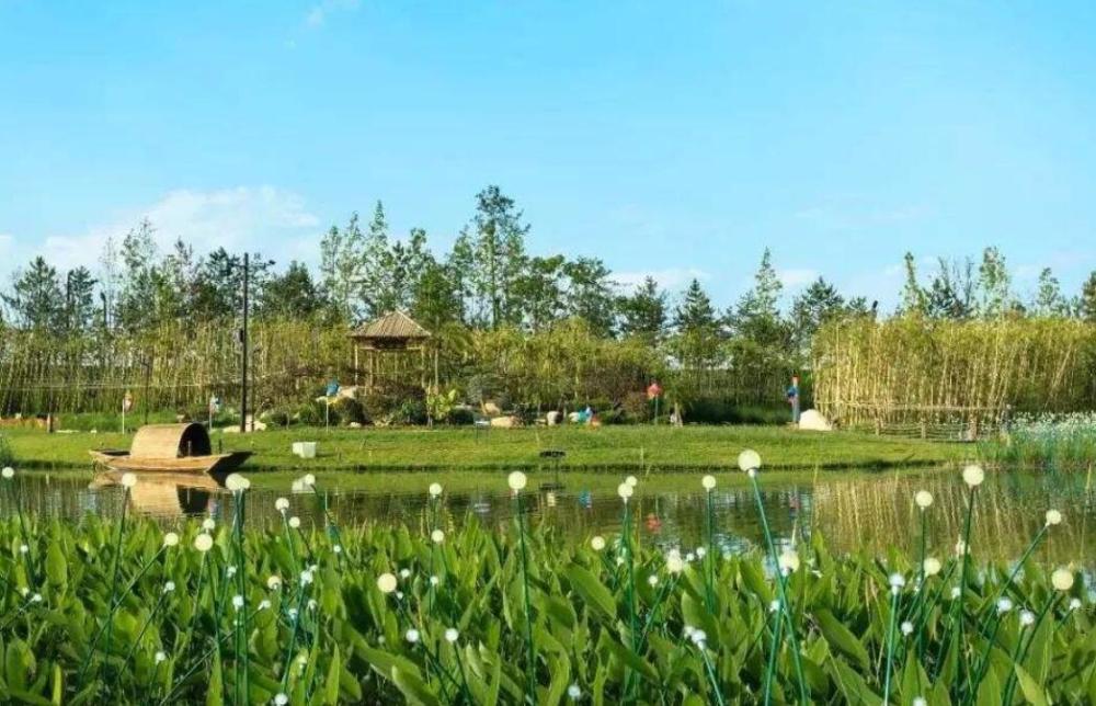 景区配置有银杏、水杉、芦苇等亲水类植物,湖中种植用以净化湖水的水草植被,形成自然生态的湖滨景观。