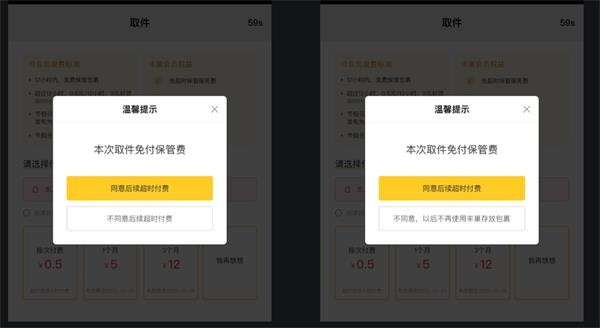在两次超时的过程中可以考虑接下来是否使用丰巢作为代收。如均选择不同意超时付费,后续快件将不再会投递入柜。
