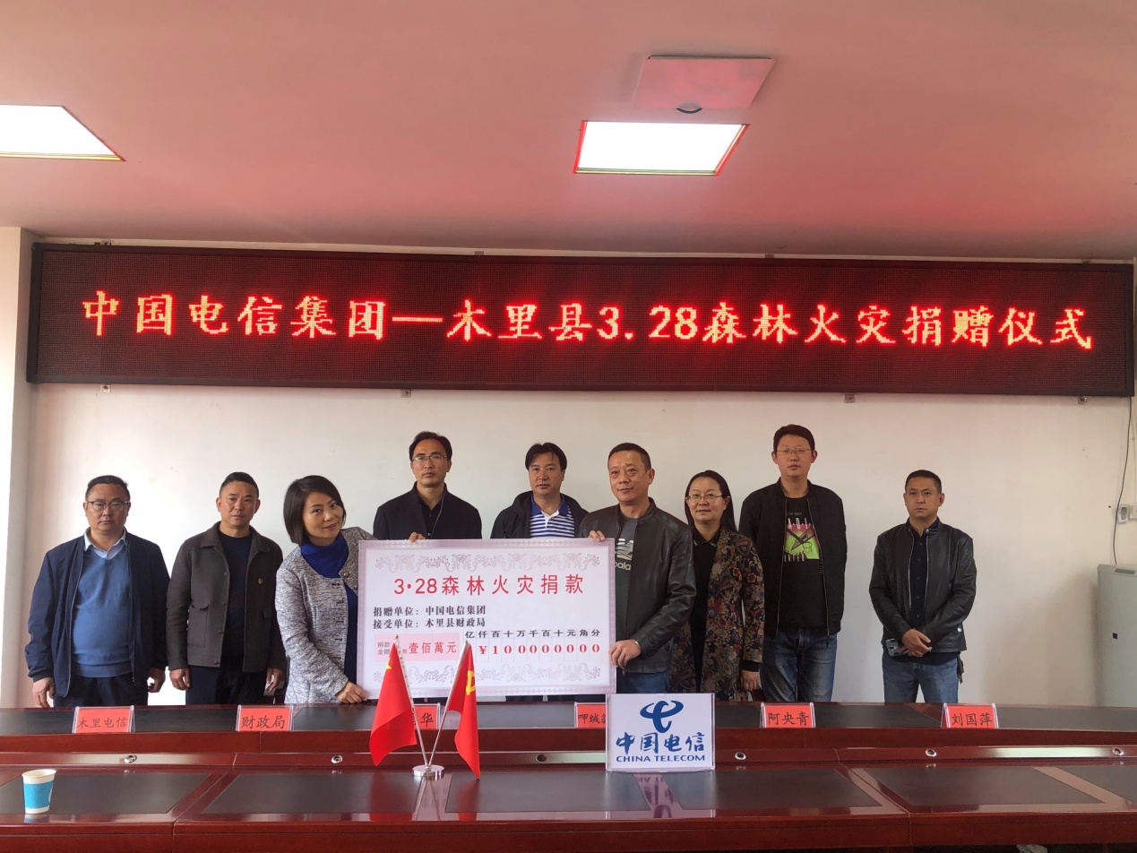 中国电信向木里县捐赠100万元抢险救灾资金