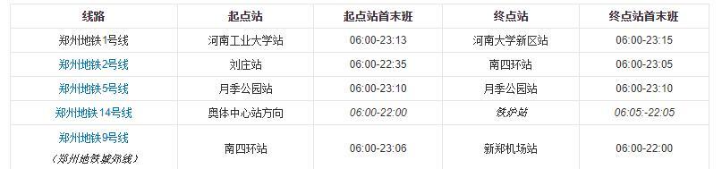 截至2020年4月,郑州地铁运营线路共5条。分别为:郑州地铁1号线、郑州地铁2号线、郑州地铁5号线、郑州地铁14号线(一期)和郑州地铁9号线(郑州地铁城郊线一期,已运营),均采用地铁系统,共96座车站,运营线路总长146.35千米。