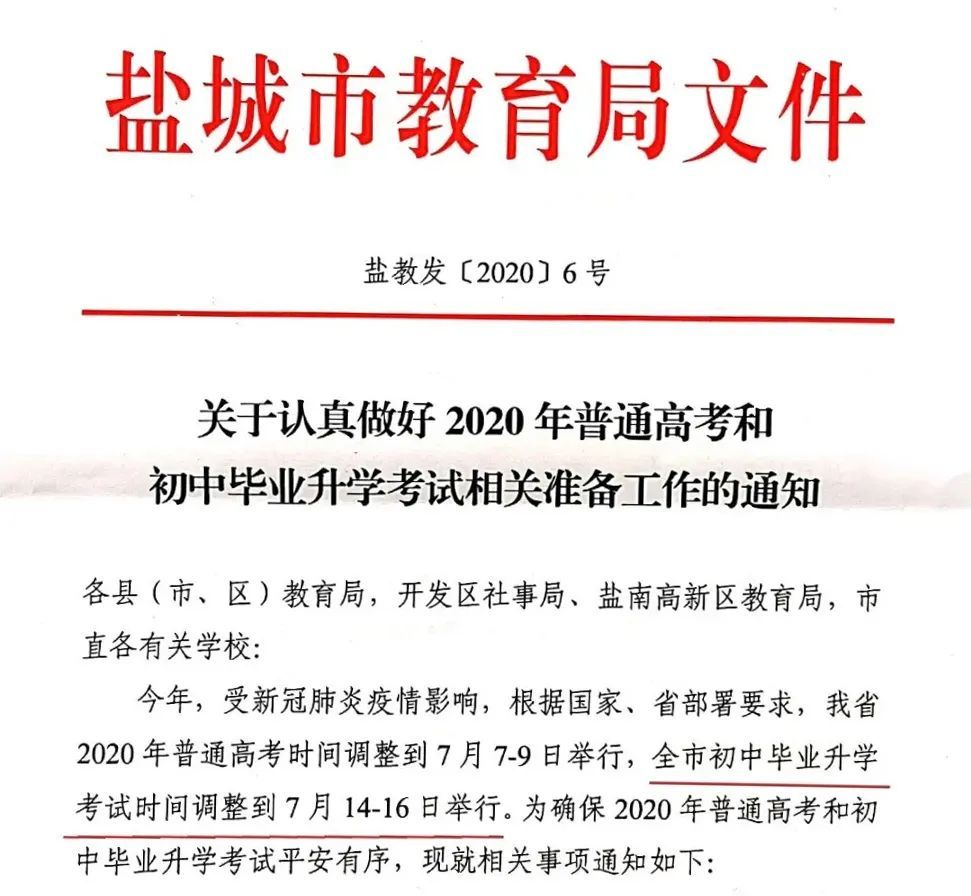根据国家、省有关文件精神,结合盐城实际,制定《盐城市2020年初中毕业与升学考试方案》。