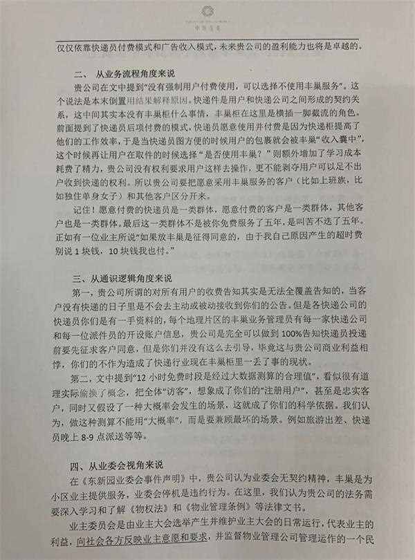 今天下午,上海首家停用丰巢的小区业委会发出致丰巢的公开信,四大角度驳斥丰巢:过河拆桥!缺乏社会责任心!文章有理有据,迅速刷屏,网友直称小区卧虎藏龙,写得比券商分析师还好。