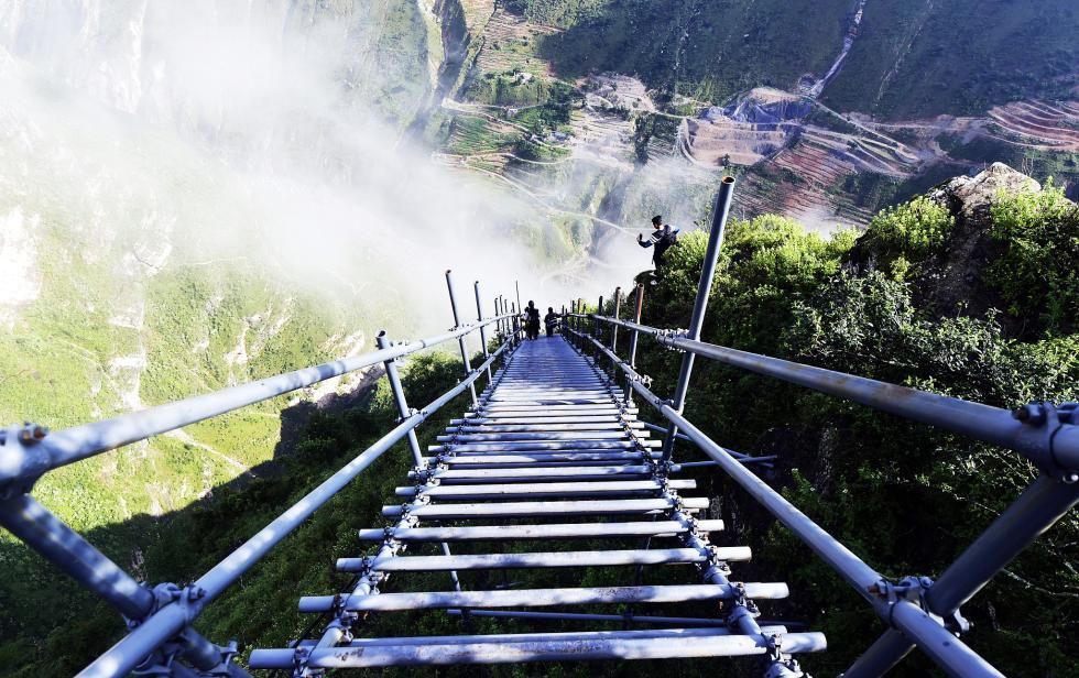 凉山州、昭觉县两级政府相关部门,为缓解备受关注的“悬崖村”村民出行难、出行险问题,级统筹投入资金实施“钢管天梯”工程建设。将2500余根钢管背上山,换下了年久失修极不安全的藤梯,新建了由钢管构成的“钢梯天路”。