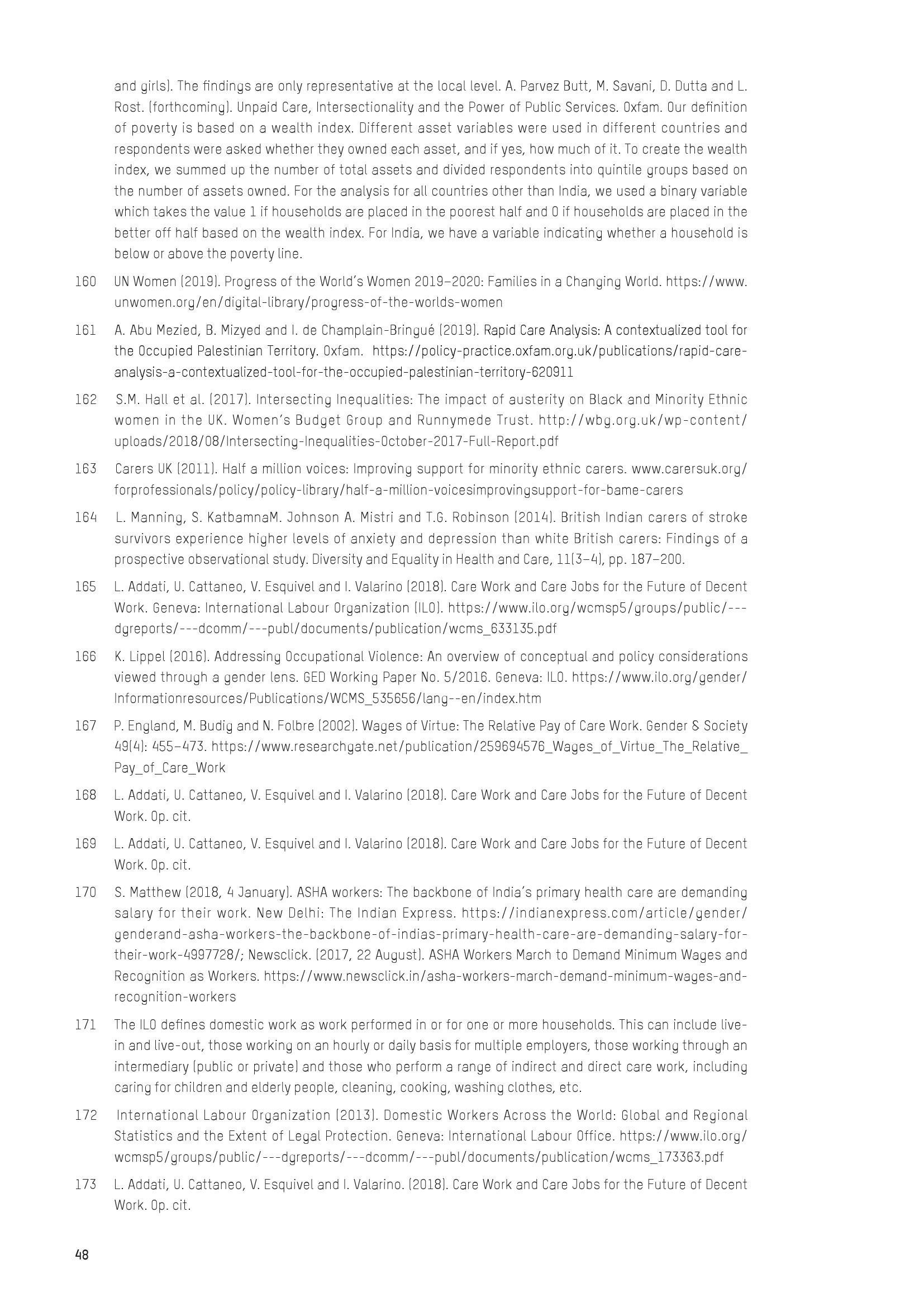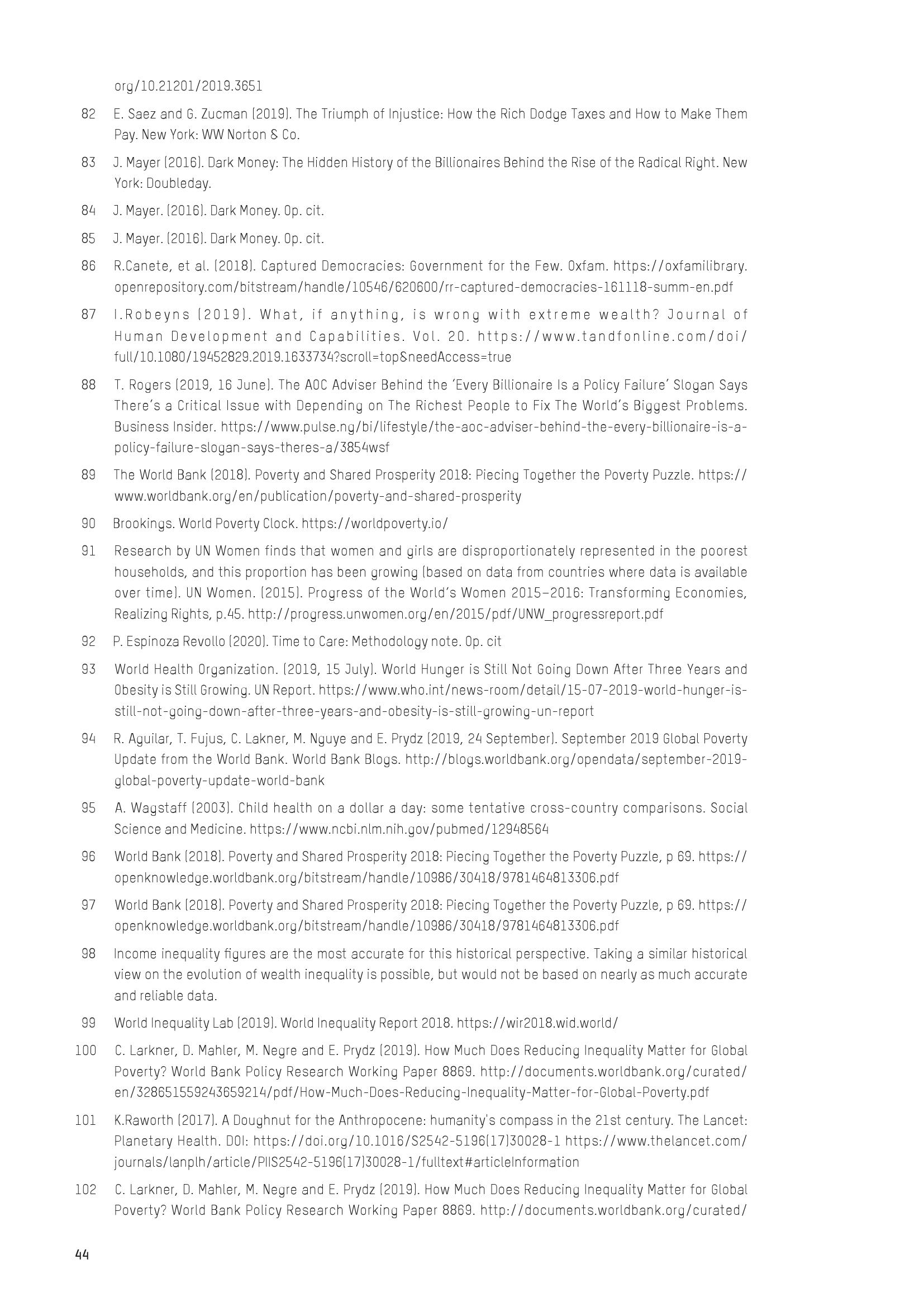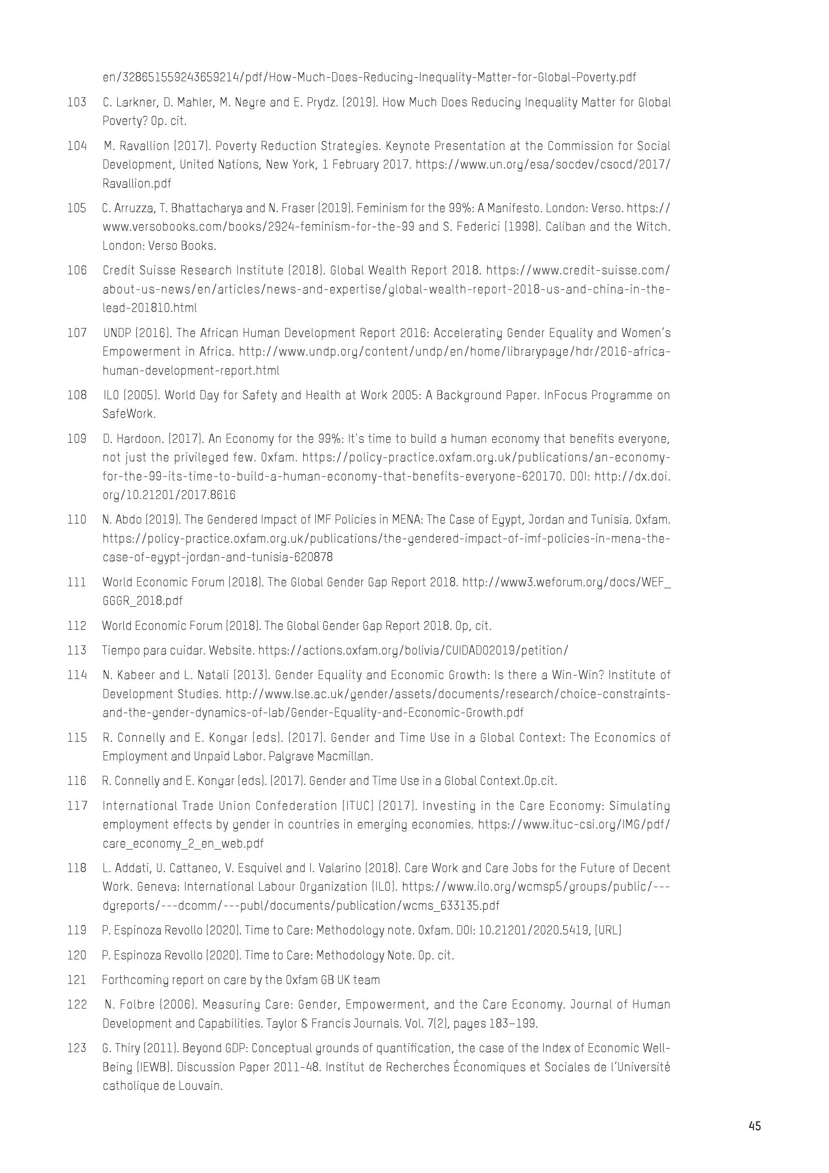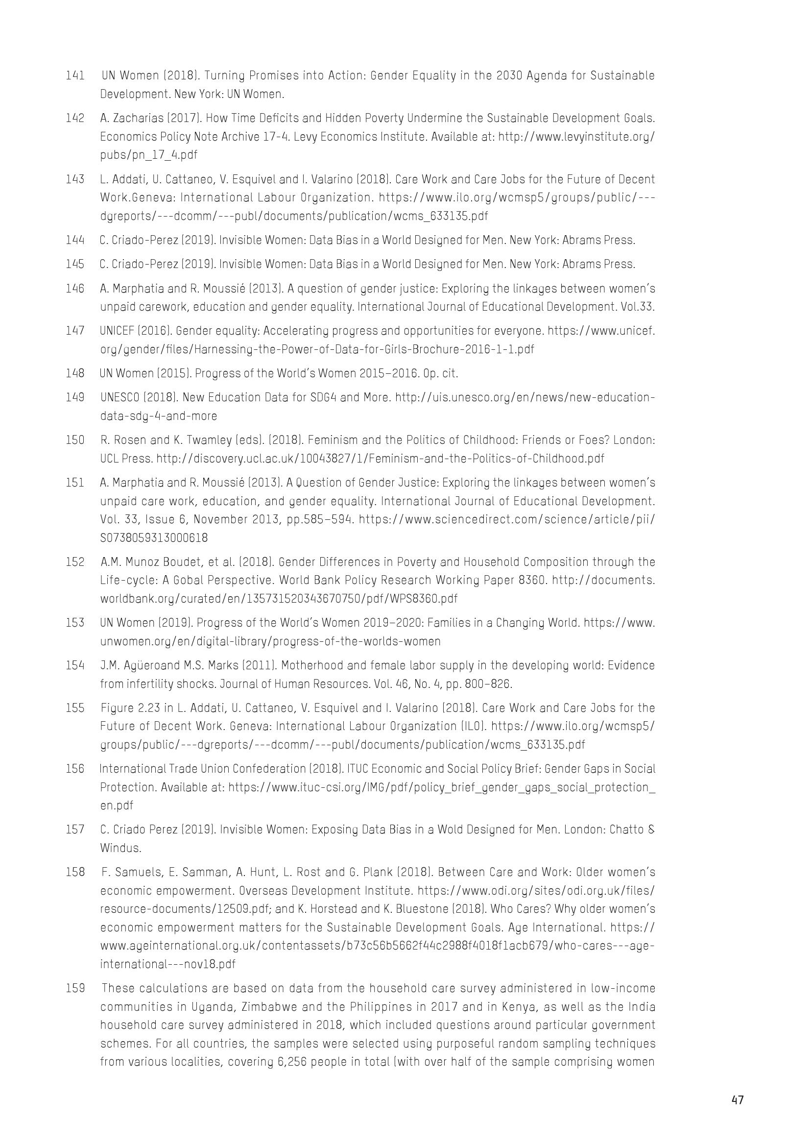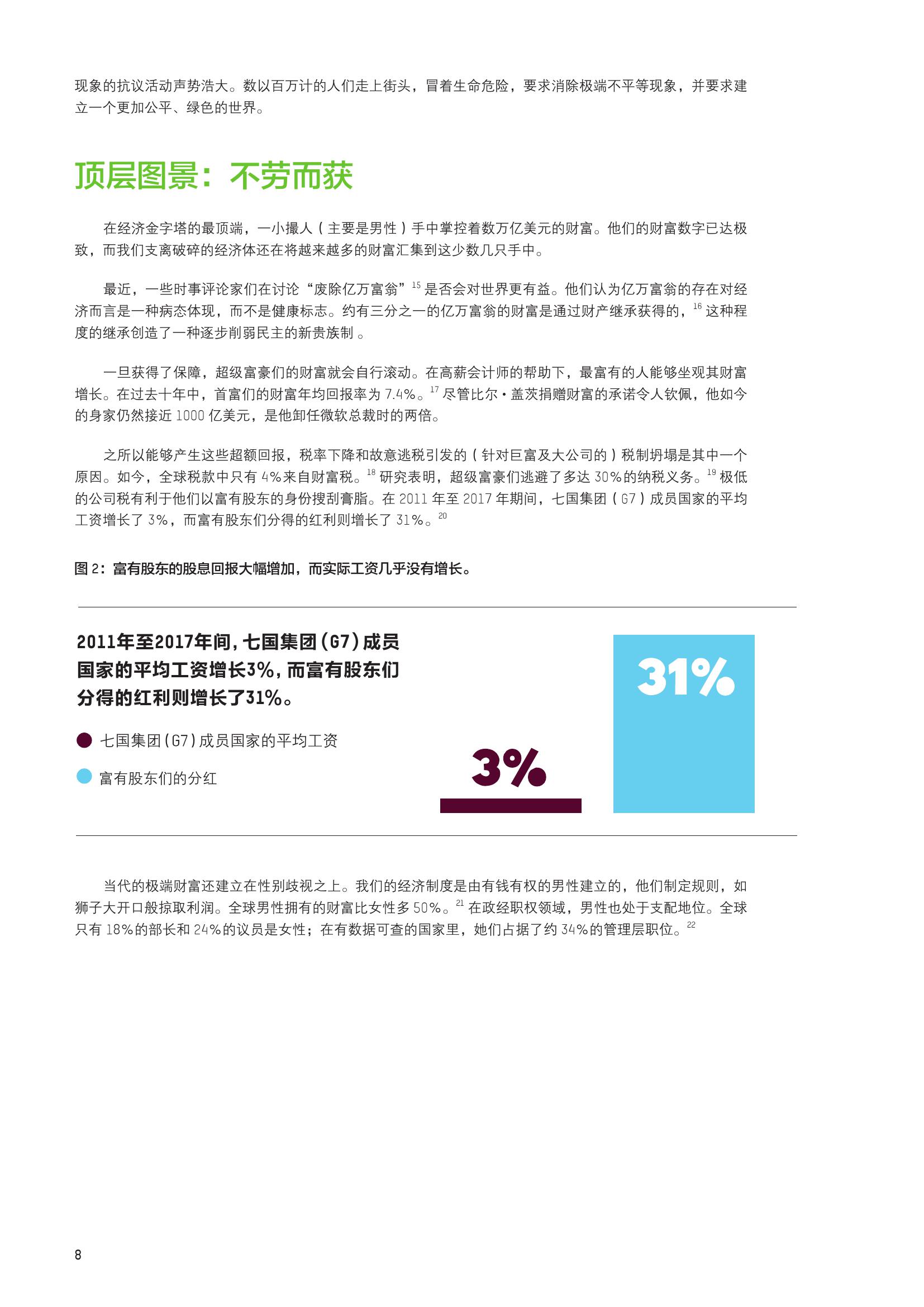 经济不平等现象已然失控。2019年,全世界的亿万富翁只有2153人,其占有的财富却比46亿人的财产总和还多。这巨大的差距建立在一个有缺陷的、充满性别歧视的经济体系之上。该体系只知珍视少数特权人群(大多数是男性)的财产;却对(每年累计)过百亿小时的、极其重要的无偿及薪酬过低的照料工作视而不见,这些工作主要由全球各地的妇女和女童完成。照料他人、做饭、打扫、汲水和拾柴——这些都是维系社会和社区福祉、保证经济正常运转的日常必备劳作。繁重且不平等的照料工作固化了性别和经济不平等现象。