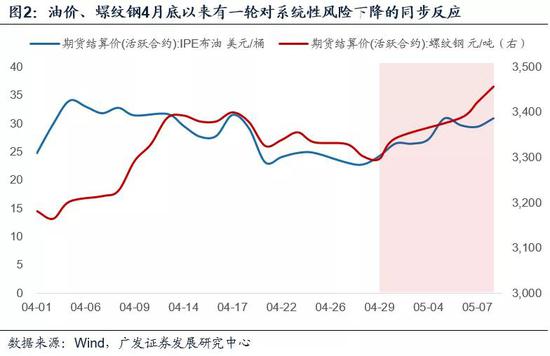 油价、螺纹钢、股指、利率4月底以来有一轮对系统性风险下降的同步反应,但幅度并不大。以螺纹钢和股指为例,约束之一是当前定价对应的对基本面的“计提”并未隐含着显著的超调。未来风险偏好是否会继续上升取决于疫情、经济、政策能否继续有超预期呈现。IPE布油价格4月28日后反弹,至5月8日幅度为36.2%;螺纹钢价格4月29日后反弹,至5月8日幅度为4.9%;上证指数在4月28日后反弹,至5月8日幅度为3.0%;10年期国债收益率4月29日后反弹,至5月8日上行幅度为14个点。