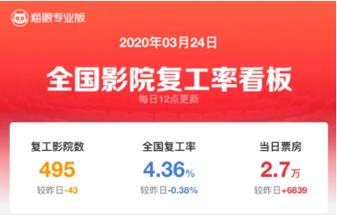 尽管国内疫情在三月下旬基本得到控制,但显然那时候影院、影视公司、院线、以及消费市场都还没有真正做好复工的准备。
