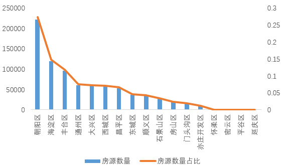 一 北京的租赁房源位置分布:朝阳区房源最多,5-6环之间占比最高
