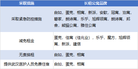 二是给租客提供支持,减少租客损失。目前自如、蛋壳及相寓均提出如果室友出现症状、疑似被收治隔离或确诊,合租室友在确诊自己无问题的情况下,企业将为租客提供无责换租服务。此外蛋壳、佳兆业旗下佳寓、魔方、乐乎、旭辉领寓及新派公寓表示,疫区租客如果由于管控等原因无法返回居住地,可以享受部分房租减免等优惠。