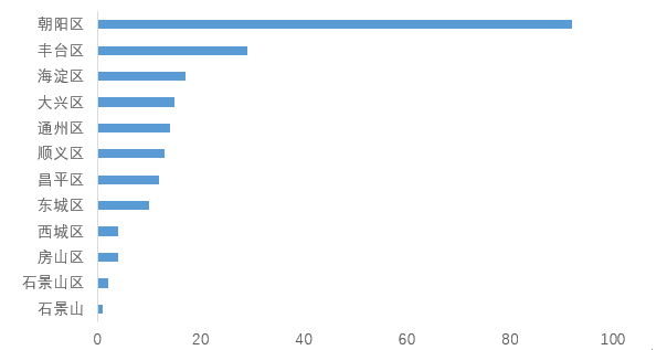 图2-2 北京市各城区集中式长租公寓门店数量