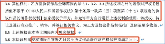 可见,在过往的阅文合同中,已经将著作权的人身权利之外的著作财产权全部独家授权于甲方(即阅文),根本不是近期“新合同”的条款。当然,笔者也觉得这些条款过于一刀切,没有留给作家自主把握和选择的空间。