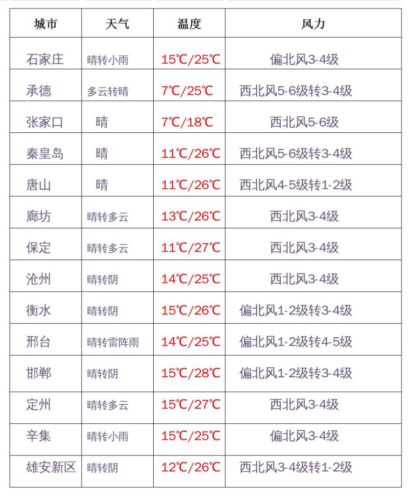 河北省主要城市预报