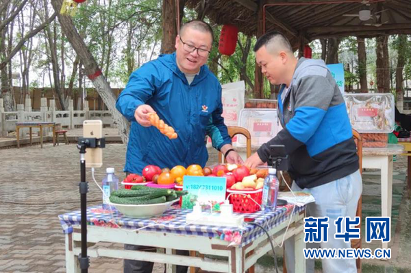 彼时,在千里之外的乌海市海勃湾区千里山镇王元地村丹丹农家乐,第一书记孔威和邻居团结新村第一书记杨明轩顾坐在镜头前,卖力地吆喝自家产品。