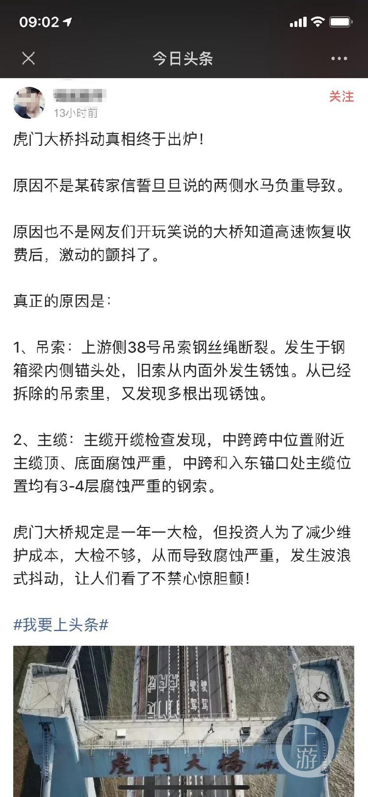 目前,这份报告部分内容流传于网络,不少网友质疑悬索桥主缆损耗和吊索钢丝绳断裂,是否为导致大桥涡振的原因之一?