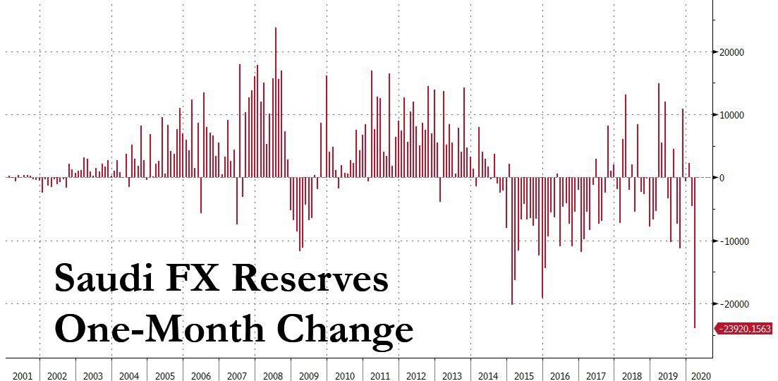 (沙特外汇储备环比变动情况,来源:沙特财政部、ZeroHedge)