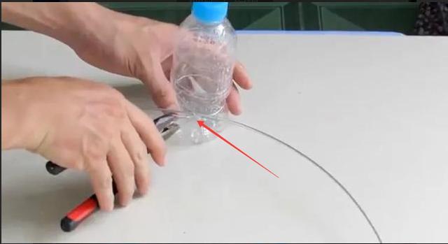 将摘除彩色贴纸的饮料瓶底部约5分1处位置用扣条固定在铝丝圈上,第二根铝丝在瓶子上端瓶盖下方部位固定,这样就形成了一个饮料瓶圈圈。(固定多大的圈,取决于有多大的电风扇罩圈)