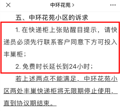 中环花苑小区业主向丰巢提出两大诉求