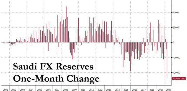 沙特的外汇储备在3月份以二十年来的最快速度减少,下降了240亿美元,自2017年中期以来首次跌破5000亿美元整数关口,降至九年最低。