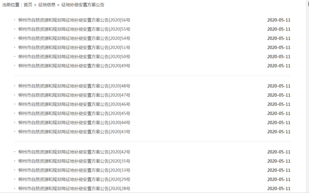 柳州市自然资源和规划局征地补偿安置方案公告[2020]56号