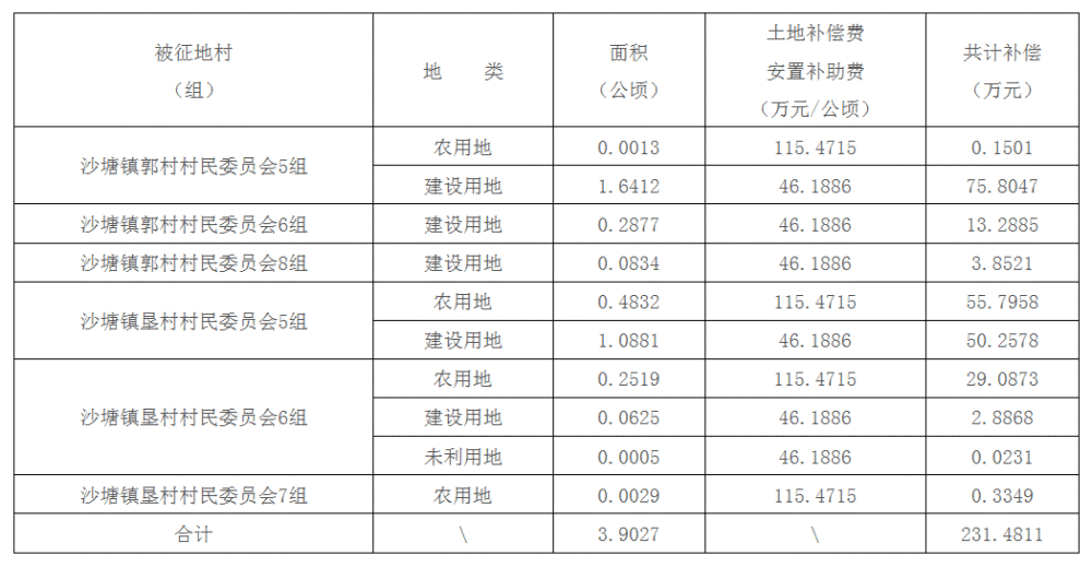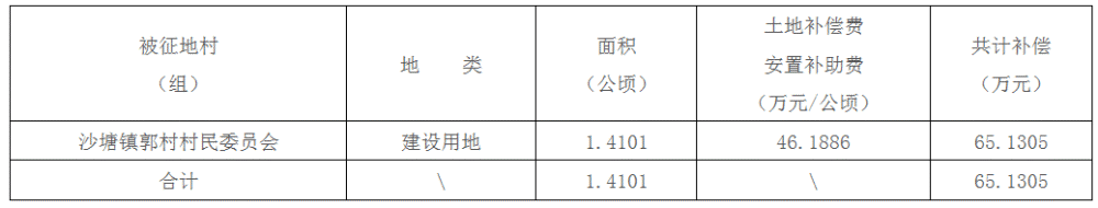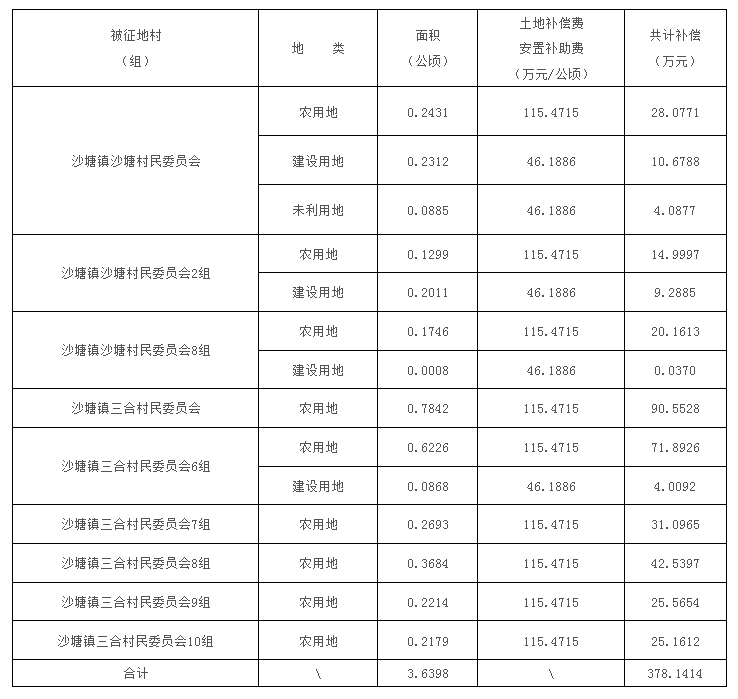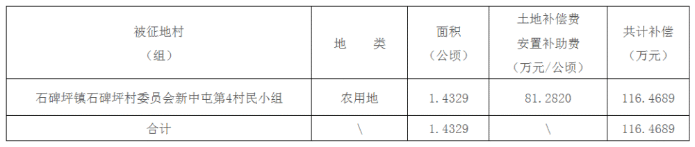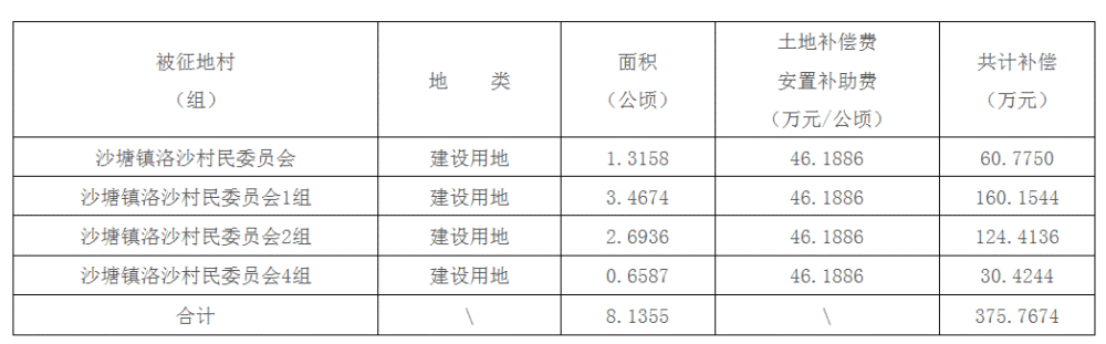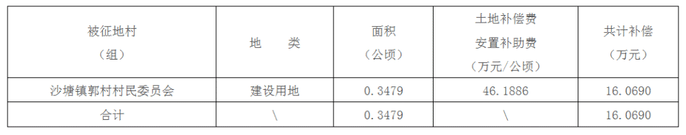 (一)被征地村(组)、土地类型、面积、补偿标准