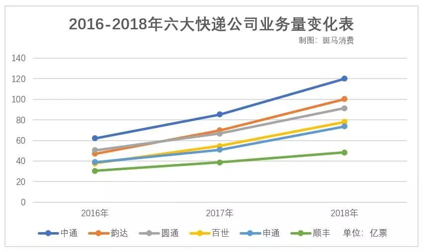 在搭上阿里这趟快车后,“通达系”都迎来了高速增长,2019年,韵达的业务单量突破100亿,成为继中通之后的第二大快递公司;圆通业务量增长了40%,申通也有着30%的业务量增长。