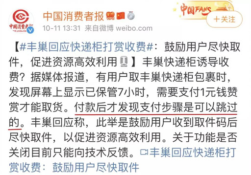 丰巢成为了顺丰派送的解压阀,却也麻烦了消费者。早在2018年的5月1日颁布的《快递暂行条例》中就规定,快递柜的投放必须要征得消费者的同意,去年10月份施行的《快递柜管理办法》更是明确了这一点。但快递公司却将“告知义务”异化为了单方面的手机短信通知,并没有给消费者选择的权利,丰巢遭到的抗议,本质上来源于丰巢对于用户的漠视。