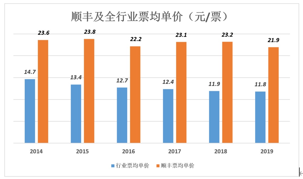 虽然从绝对意义上来讲,顺丰还远没有到生死存亡的地步——其快运、同城、冷运和医药等业务都取得了两位数的增长,也拥有着非常完善的物流系统。从今年一季度来看,顺丰的单票收入进一步下滑,从21.94元下降到19.5元,价格战已经打响。