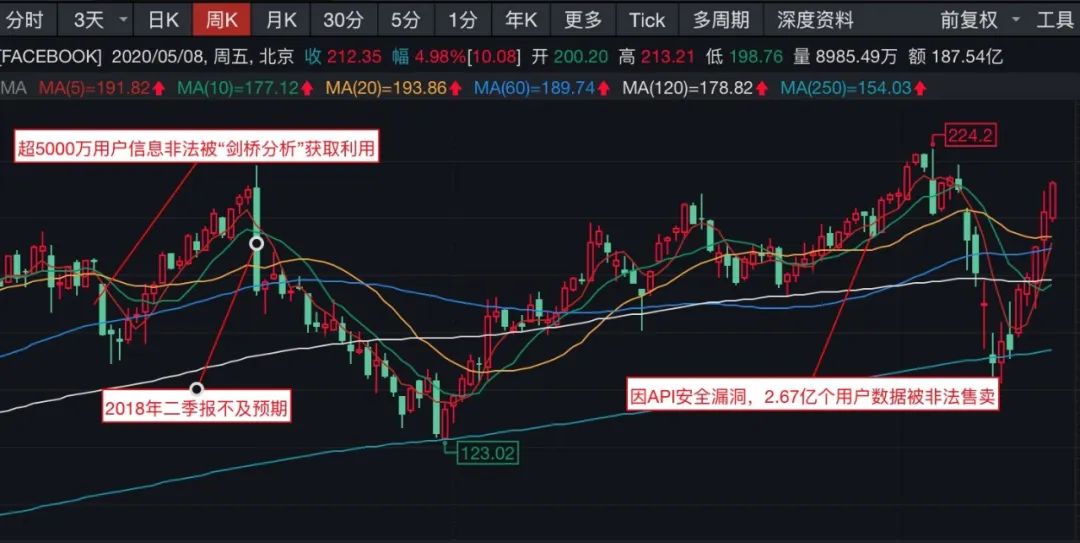 这已经不是Facebook第一次因为用户隐私安全问题被诉讼了,Facebook股价曾多次因数据泄漏而惨跌。