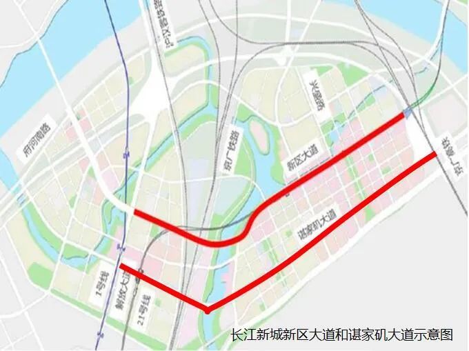 近日,长江新城新区大道(解放大道―三环线)工程、谌家矶大道(解放大道-三环线)工程于5月1日正式报建。长江新城新区大道通车后将作为区域内滨水、景观、迎宾的休闲街道,支撑着长江新城核心区对外和区内交通联系;谌家矶大道建成后将东延长江主轴,大力改善交通环境,助力新城起步区的建设与发展。