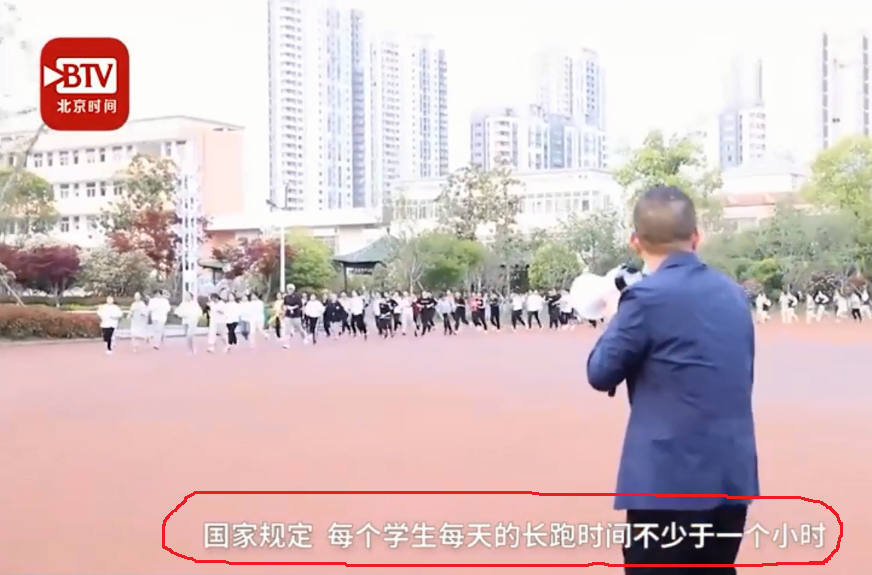 从采访视频内容来看,学校这么做的初心是好的。身体是革命的本钱,要想使学生全面发展,必须增强孩子的体质。并且学校还积极执行国家贯彻的规定,让孩子们每天长跑。但是,该学校相关负责人对国家相关行政规定和规范性文件的理解上似乎存在一定的偏差。他所说的“国家规定每个学生每天的长跑时间不少于一个小时”,国家相关行政法规和规范性文件中并不是这么说的。