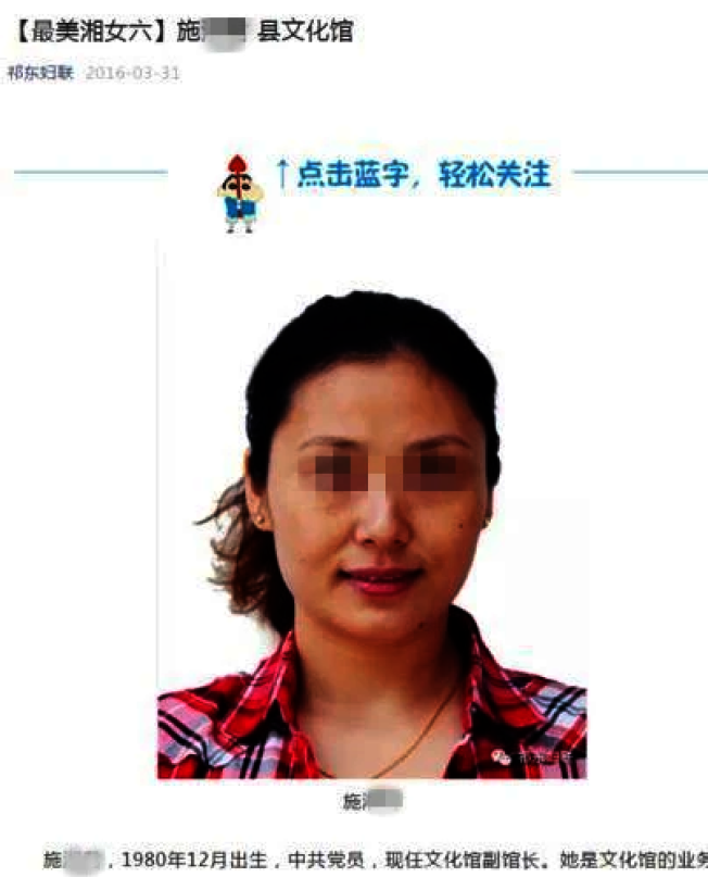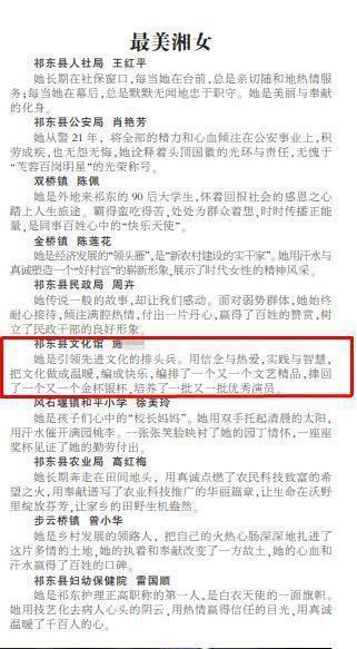 祁东县文化馆相关负责人介绍,施女生于1980年,在馆内的业务能力很强,分管免费开放、群众文化活动、安全生产工作等。