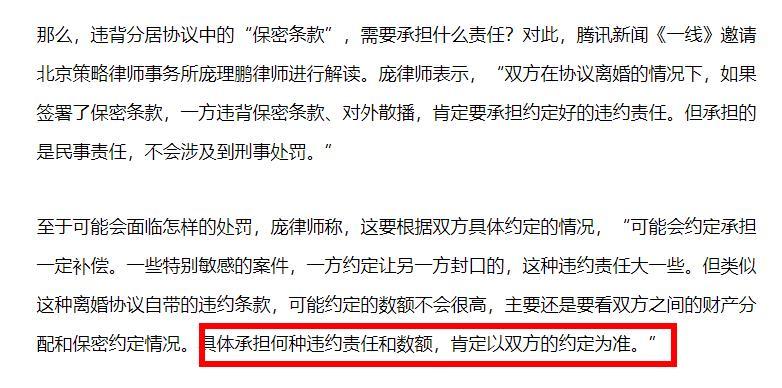 但赖弘国的举办记者会的举止似乎是在有意破坏这份协议,而这也许会加速他的离婚过程。不过,他也必须承担一些法律责任,有媒体分析称“双方在协议离婚的情况下,如果签署了保密条款,一方违背保密条款、对外散播,肯定要承担约定好的违约责任。