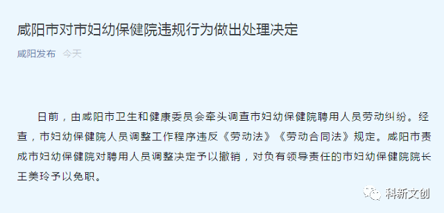 这几日的新闻中有一则备受社会关注的消息,就是“咸阳妇保医院40名抗疫一线医护人员被裁”事件有了最新进展:该医院人员调整工作程序有违《劳动法》、《劳动合同法》的规定,对聘用人员的调整决定予以撤销,对负有领导责任的医院院长予以免职。