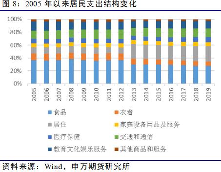 CPI是度量居民生活消费品和服务价格水平随着时间变动的相对数,综合反映居民购买的生活消费品和服务价格水平的变动情况。消费品“篮子”里重要的组成部分过快上涨,显然会导致居民的相对购买力下降。当前,根据相关研究,食品烟酒在CPI中的权重大概为30%,与当前居民的消费结构较为一致。