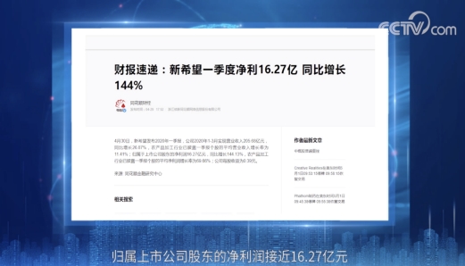 以新希望集团为例,其于4月29日公布的2020年第一季度财报显示,该企业实现营业收入205.68亿元,同比去年增幅在27%以内;净利润16.27亿元,同比增长144%。出色的数据,成了他们抗击疫情的最好答卷。