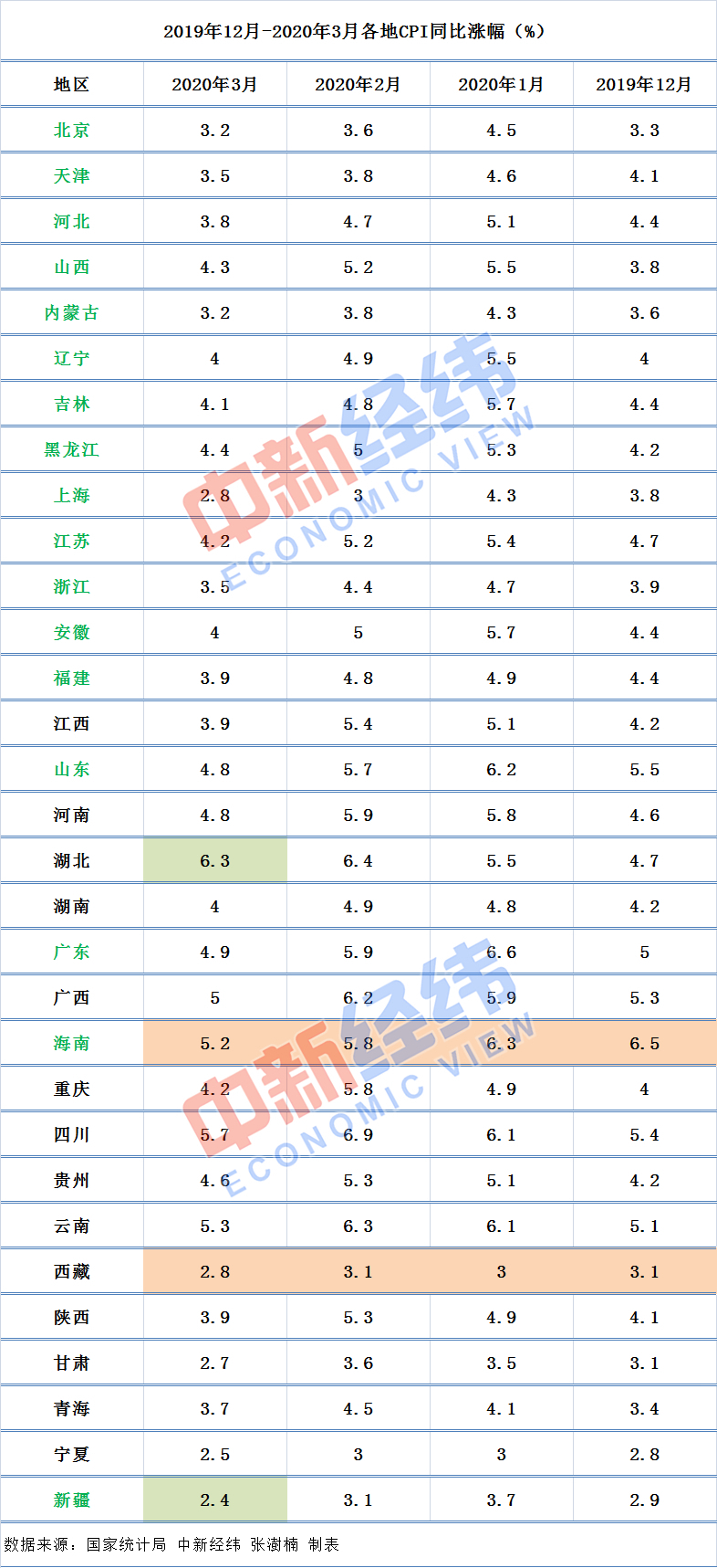 原标题:31省份3月CPI来了:10地涨幅超全国 湖北6.3%领涨