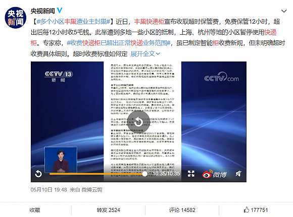 上海这小区的行动似乎带起了一阵“多米诺骨牌”效应,宣布抵制丰巢智能柜的小区越来越多。包括央视新闻在内的多家大媒体均报道了丰巢智能柜风波,而立场基本都是站消费者并声讨丰巢。